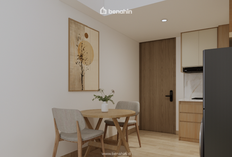 Design interior and build F+F Apartemen Pakuwon Residence Bekasi dengan konsep minimalis melalui dominasi motif kayu dan perpaduan marble putih yang bersih. Setiap ruang dirancang dengan mempertimbangkan efisiensi dan kebutuhan penyimpanan, sehingga tetap fungsional meski dalam keterbatasan luas apartemen. Interior yang sederhana, rapi, dan nyaman, dengan pemanfaatan ruang yang optimal di setiap sudutnya.